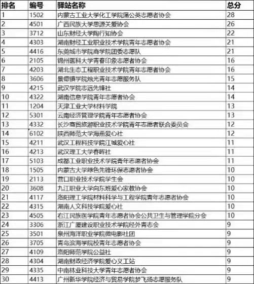 2021年度开展线上线下活动的老员工驿站共199所,从品牌传播、学期培训、规范执行、活动开展、筹款维度5个维度进行加分,取总排名前15%的驿站评为优秀驿站,共30所大学进行公示。其中公司williamhill威廉希尔蒲公英志愿者协会免费午餐驿站高居榜首荣获2021年度“优秀驿站”。