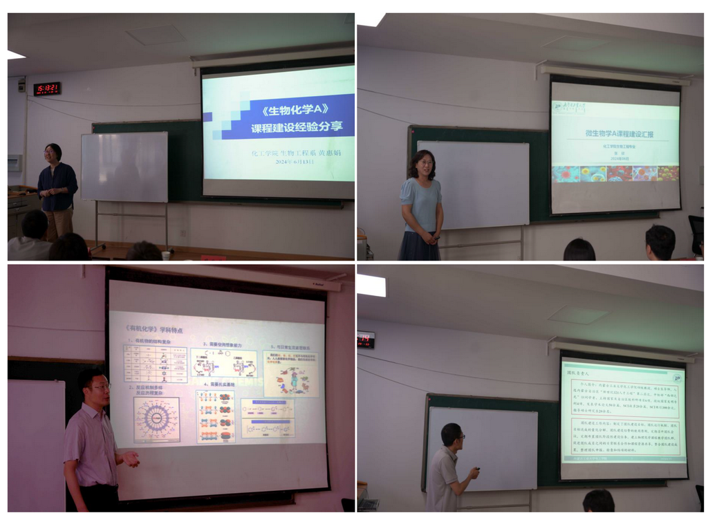 本次研讨会特别邀请了教学质量奖获奖课程主讲教师黄惠娟、张欣和胡宇强,分别对《生物化学A》、《微生物学A》和《有机化学》进行了课程建设经验分享,并与参会的老师进行了深入的交流和热烈的讨论。同时,校级《物理化学》优秀教学团队负责人郝建敏教授也针对如何加强教学团队的培育和建设进行了深入详细的经验分享。