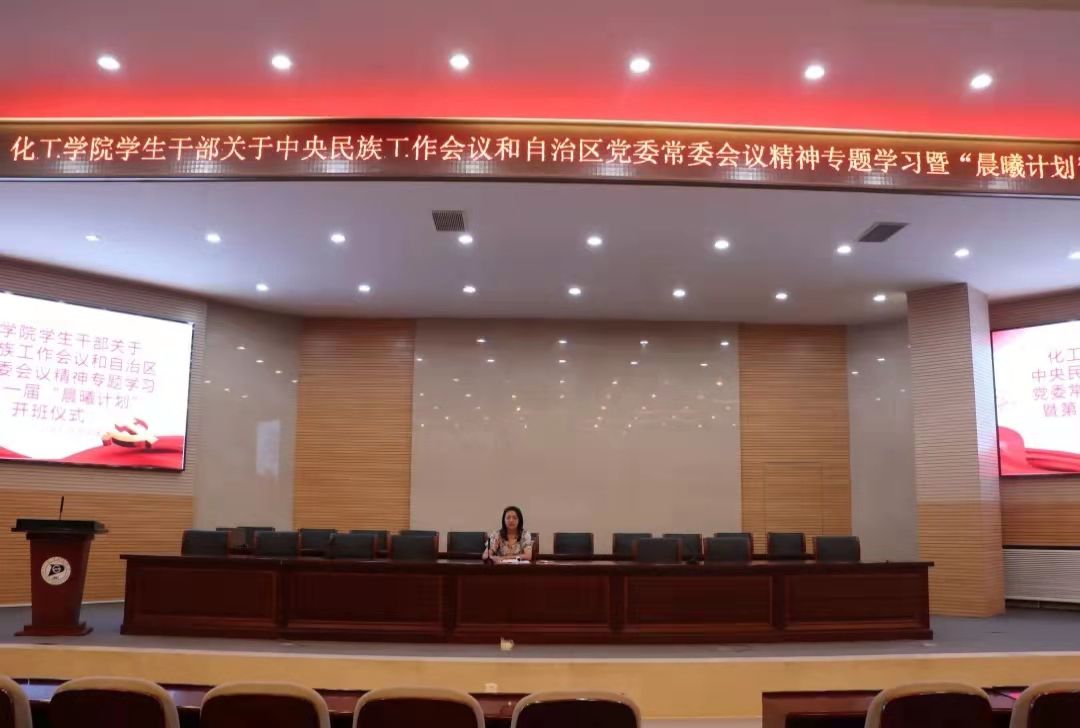 为引导员工干部坚定树立各民族同心共筑中国梦的思想意识,深入传达学习关于中央民族工作会议和自治区党委常委会议精神,提高员工干部的综合素养,打造“院级骨干典范”,公司团委积极响应青年马克思主义者培养工程的号召,于9月1日晚19:00在化工楼报告厅举办英国威廉希尔公司员工干部关于中央民族工作会议和自治区党委常委会议精神专题学习暨“晨曦计划”开班仪式。英国威廉希尔公司全体员工干部参加活动,团委吴迪老师出席活动,并致开幕词。