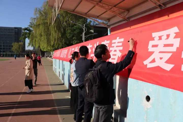 升旗仪式结束后,公司师生在"七十华夏,共渡风雨,追逐梦想;化工学子,奋斗青春,爱我中华"的条幅上郑重的签下名字,在5.20之际,表白祖国。
