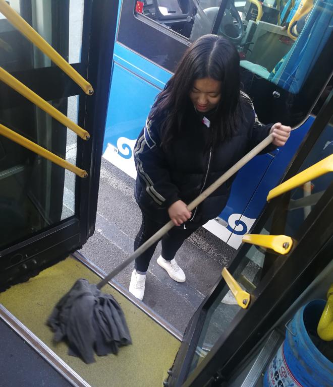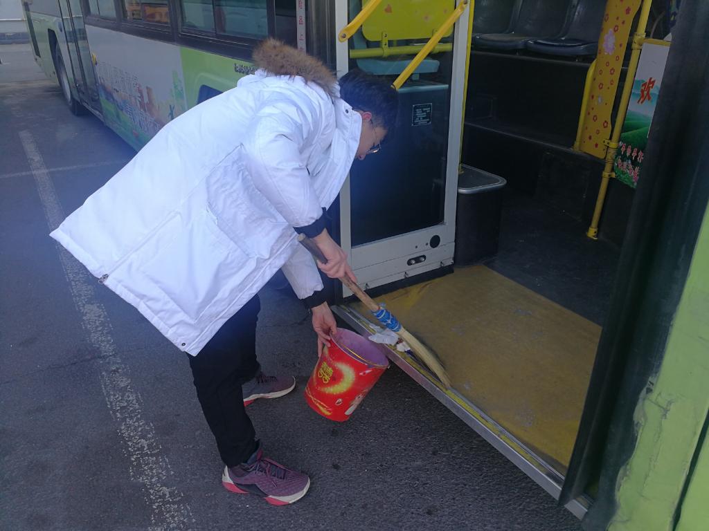 冬日的寒冷也未能阻挡志愿者们的服务热情,长期未打扫的公交车内积满了灰尘污垢,志愿者们不惧寒风,不怕脏累,抱着积极的态度进行工作。他们身着英国威廉希尔公司志愿者服,激情满满的投入志愿活动中,利用各种工具认真仔细地擦洗了公交车内的每个角落,没有一丝懈怠。志愿者们清扫完一辆公交车,立即赶往下一辆,四个小时的时间,将公交五公司内所有公交车都彻底清扫了一遍,并做好了善后工作。经过大家的共同努力,为青城市民打造出干净整洁的车内环境。