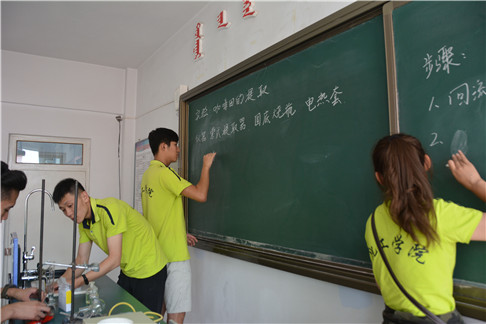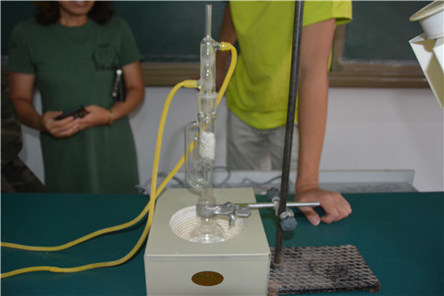 公司“三下乡”队员在锡林郭勒盟蒙古族中学化学实验室学习交流环节,面向该校高一员工开展特色化学实验——咖啡因的提取。队员们用公司的有机化学实验设备从茶叶中提取咖啡因,队员们向高一员工详细介绍索氏提取器、刺形分馏柱等有机化学实验器材,并用蒸馏、浓缩的实验等待时间和高中生们从生活、学习、化学学科等各个方面进行交流探讨。通过实验操作,激发了高中生学习化学学科、学习工科的学习兴趣提高了科学素养。同时,公司队员们在实验过程中也对专业知识的了解更加扎实,增强了实践能力。