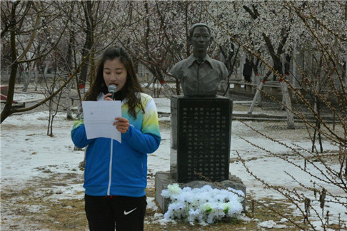 “蒲公英”志愿者代表柳京晶同学、制药工程17级员工代表张雪发言,道出了我们对池明明的尊敬与追思,也让参与的同学们学习了池明明同学的宝贵精神。制药工程17级的同学们在池明明塑像前《你的,尽是温暖》诗朗诵,精炼的话语鼓励着我们传承他临危不惧,大公无私的精神。