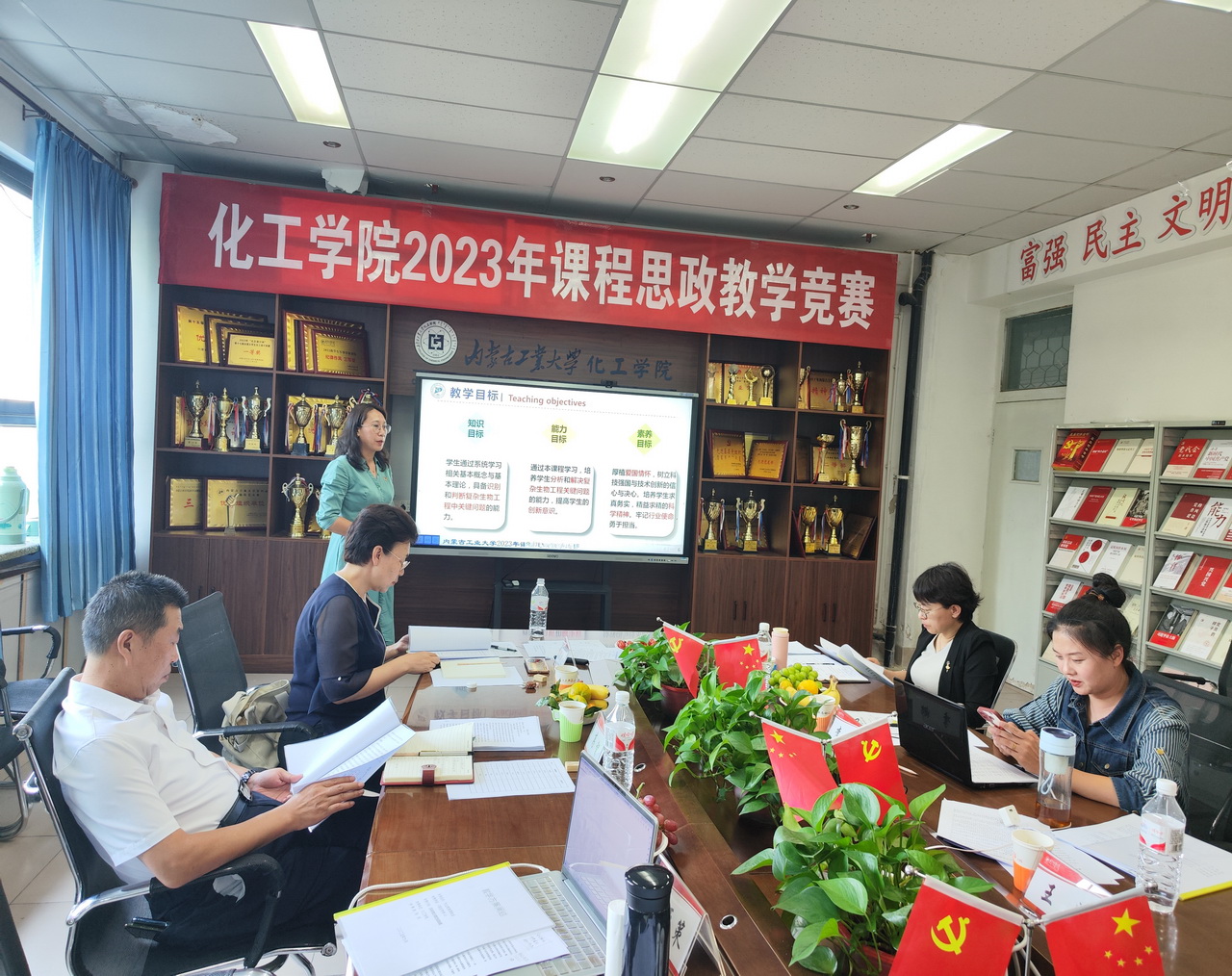 根据教务处下发的“关于举办2023年课程思政教学比赛的通知”精神,为进一步推进专业课程思政建设,提升教师课程思政教学能力,促进课程思政建设经验交流与推广,英国威廉希尔公司于2023年9月14日举行了英国威廉希尔公司课程思政教学比赛,宝呼和等14位教师参加了比赛。大赛评委组由材料科学与工程公司陈芙蓉教授任组长,教务处副处长徐睿琛、英国威廉希尔公司督导组组长高智、化工系副主任米亚策、化工系党支部书记李娜5位老师组成。