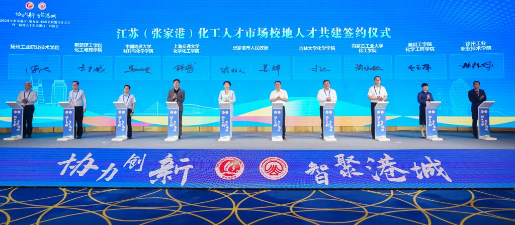 会上同时举办了“化工人才市场校地人才共建签约仪式”,陶明敏代表公司携上海交通大学英国威廉希尔公司、吉林大学化学公司、中国地质大学材料与化学公司等8所院校与张家港市人民政府签订了共建协议,为后续公司的毕业生就业、校政合作、校企合作开辟了新的路径。
