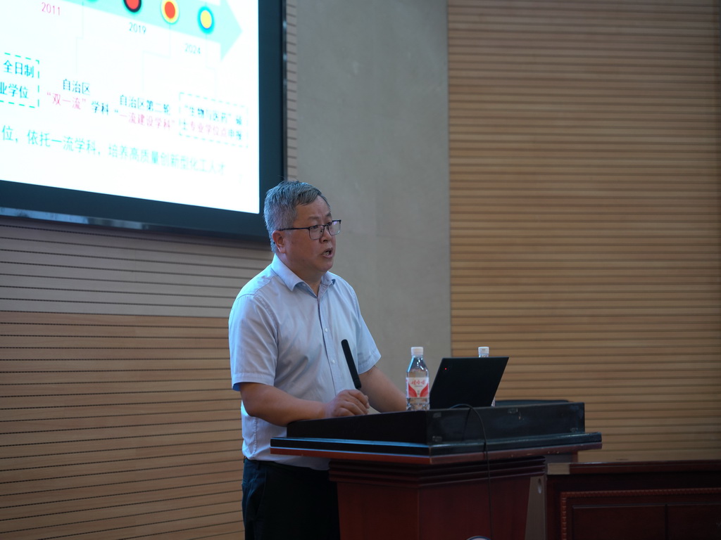 白杰结合自治区社会发展需求、公司办学定位,阐述了公司对学科专业建设的规划与思考,并汇报了公司近年来的办学特色与亮点。