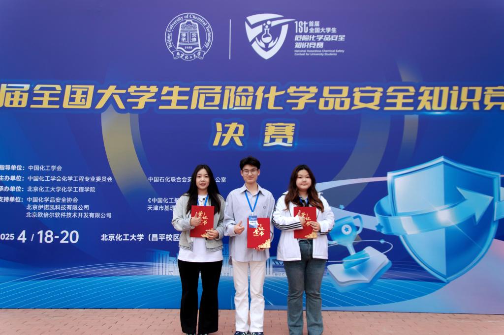 由郭俊文和吴瑞凤两位教师全程指导,应化系刘书泽、刘佳乐、王欣妍以及周光庆、张恒、赵治刚组成的“危盾联盟”和“化安守护者”两支队伍,凭借扎实的专业知识和出色的团队协作能力,在决赛中均取得了三等奖的优异成绩。