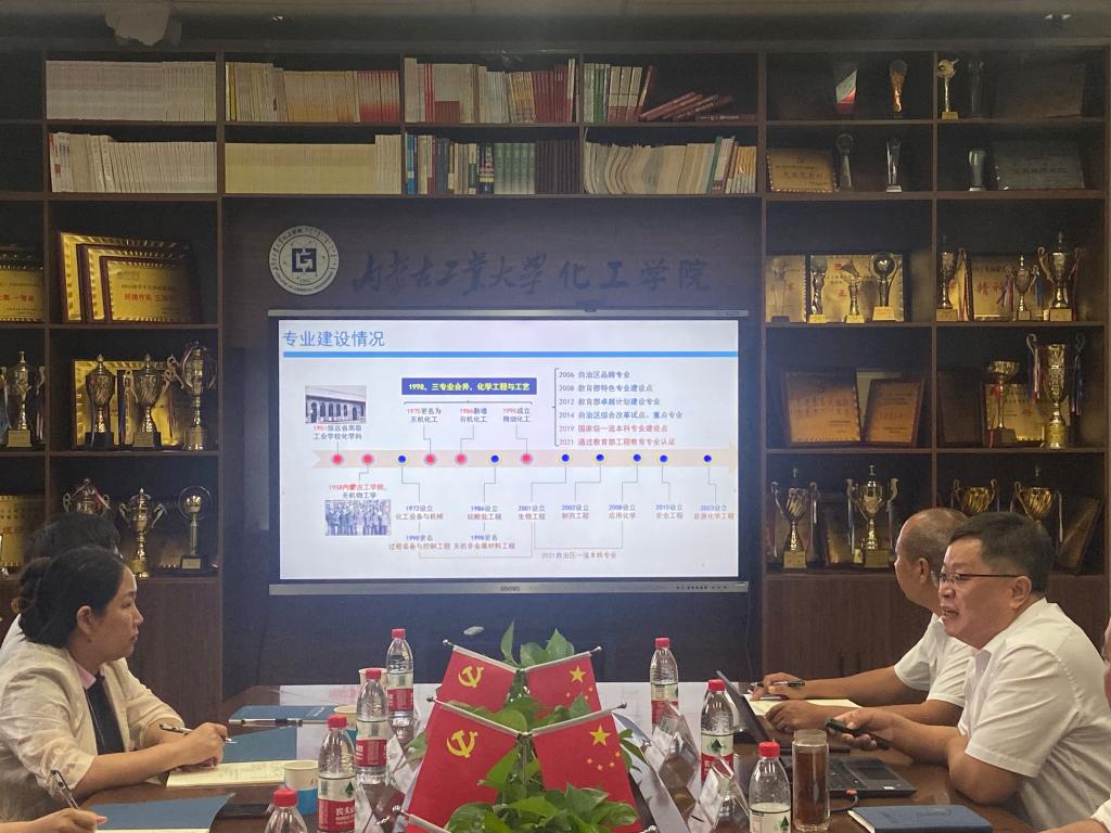 经理白杰向与会专家介绍了公司专业及学科发展沿革、团队与平台建设、专业人才培养、科学研究成果等基本情况,并就化工一流专业建设点建设所取得的成效进行了说明。