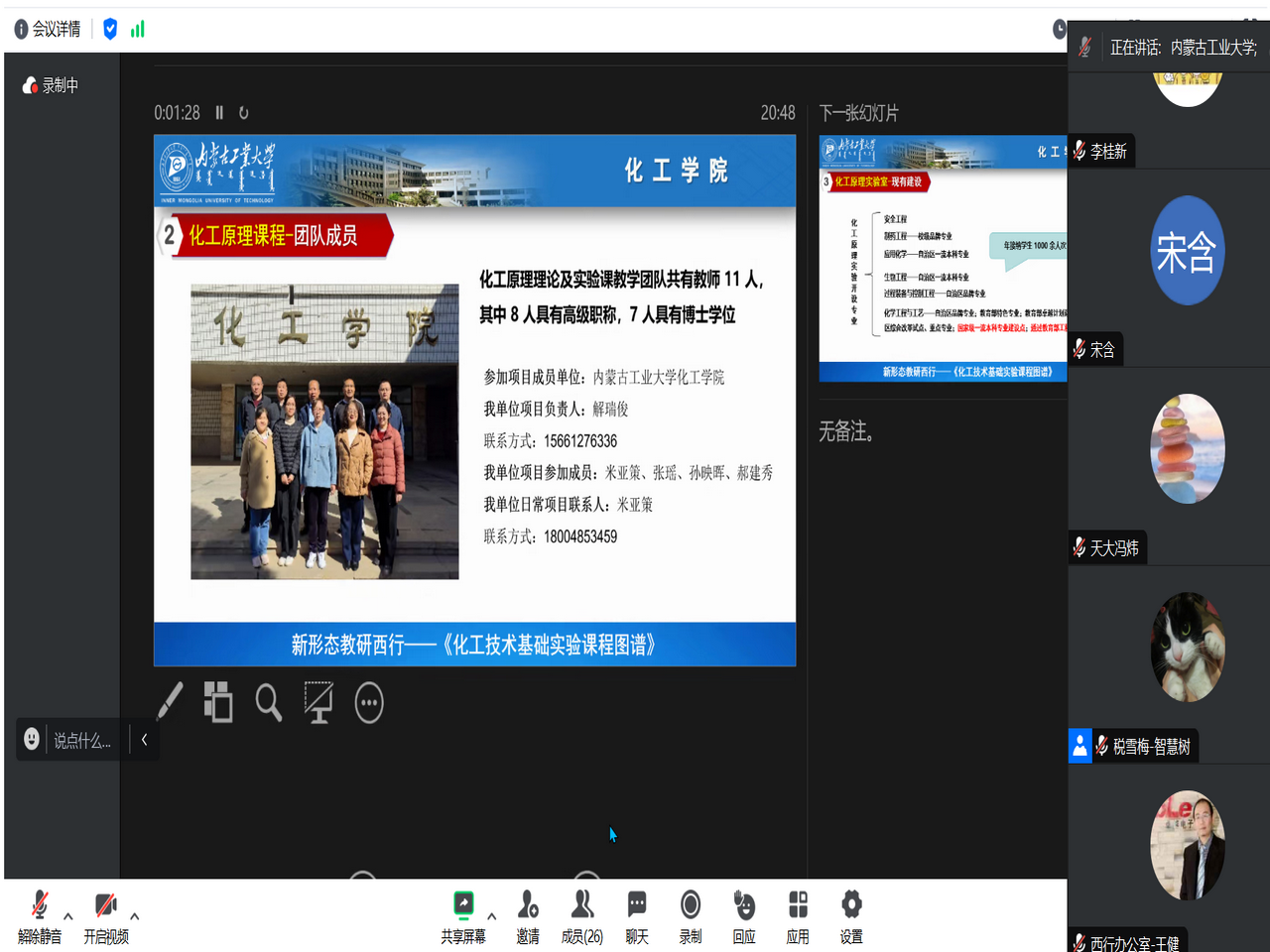 智慧树网副总裁王健、新疆师范大学化学英国威廉希尔公司副经理李桂新分别代表各单位致词。各单位项目组成员汇报了本单位化工技术基础实验方面的工作开展情况。
