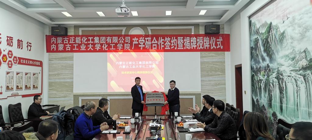 为了服务自治区“科技兴蒙”行动计划,支持企业高质量发展,依托双方资源优势,经过友好协商,公司和正能集团建立了产学研合作关系,搭建研发平台,推动低阶煤分质分级利用相关领域内的创新研发和科研成果转化。1月13日,双方在正能集团举行了产学研合作签约和产学研合作示范基地与技术研发中心揭牌授牌仪式。