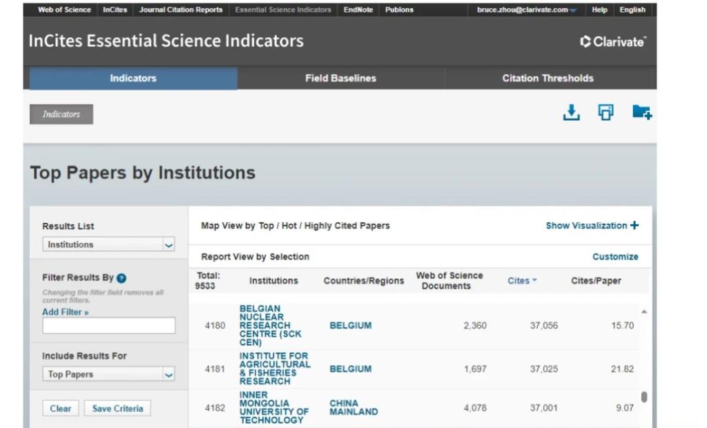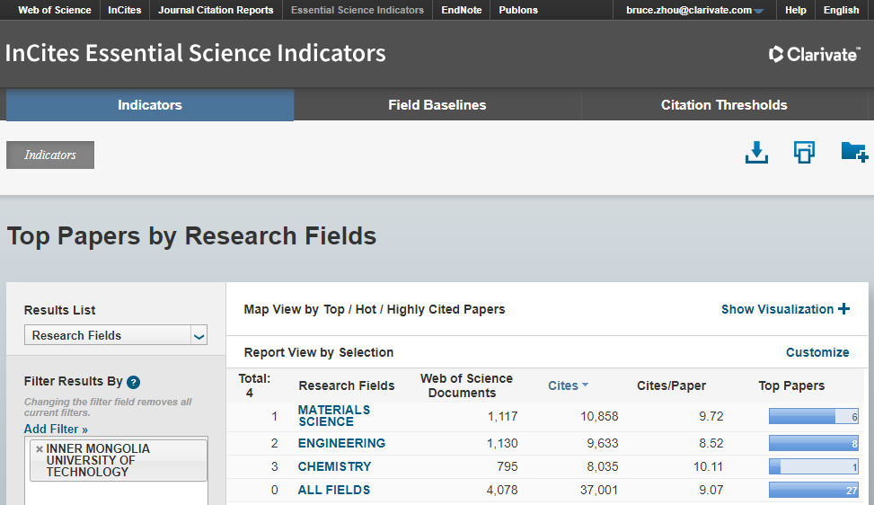 ESI(Essential Science Indicators,基本科学指标数据库)是衡量科学研究绩效、跟踪科学发展趋势的基本分析评价工具,基于科睿唯安Web of Science(SCIE/SSCI)所收录的全球12000多种学术期刊的1000多万条文献记录而建立的计量分析数据库,主要通过论文数、论文被引频次、论文篇均被引频次、高被引论文、热点论文等指标,以学术论文产出为基础对国家和地区科研水平、机构学术声誉、科学家学术影响力以及期刊学术水平进行全面衡量,是当今世界范围内普遍用以评价高校、学术机构、国家及地区国际学术水平及影响力的重要评价指标工具之一。