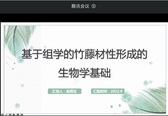 9月28日上午,公司与科研处共同举办线上学术报告会。会议邀请国际竹藤中心研究员、博士生导师赵韩生以“基于组学的竹藤材性形成的生物学基础研究”为题作了精彩的报告。