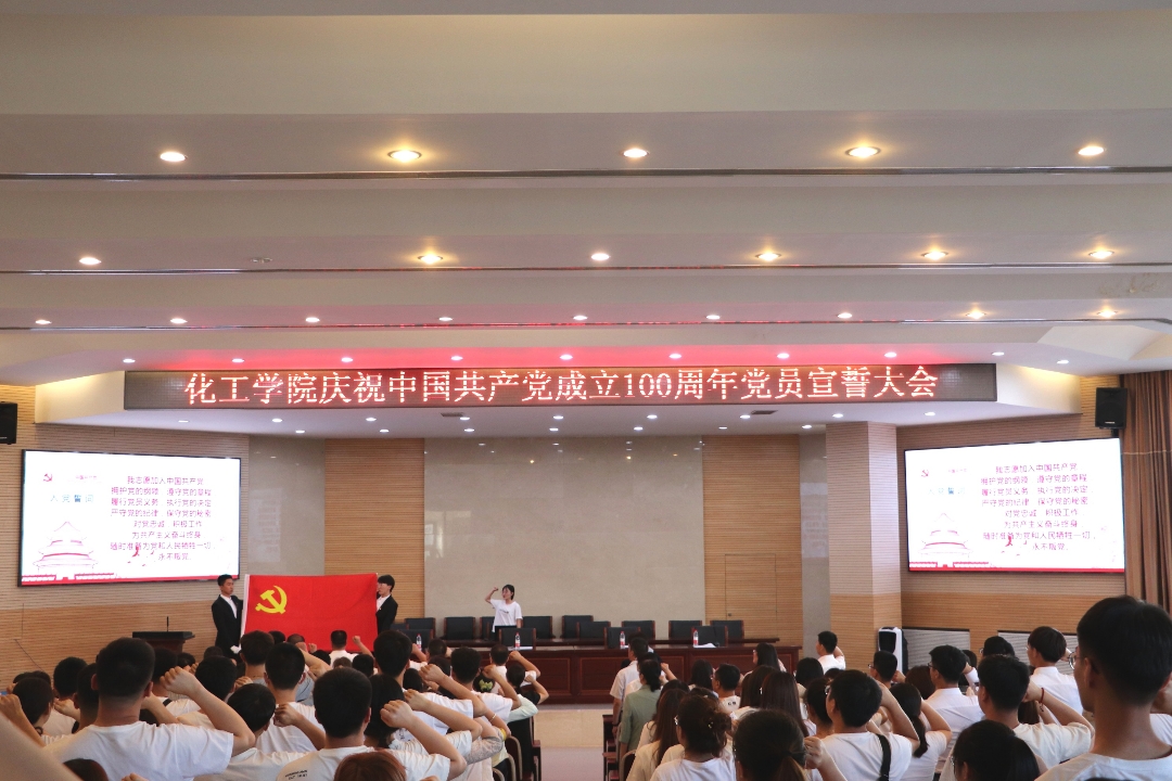 为庆祝中国共产党成立100周年,传承革命精神、涵养奋斗初心、凝聚奋进力量,加强党性修养、培养红色基因,英国威廉希尔公司于6月21日晚6:00在化工楼报告厅召开庆祝中国共产党成立100周年党员宣誓大会。院领导、党委委员、公司师生党员共400余人参加活动。大会由副经理白杰主持。
