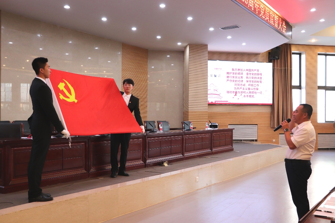 会上,组织举行了新党员入党宣誓、全体党员重温入党誓词活动,公司党委书记王凯领誓。