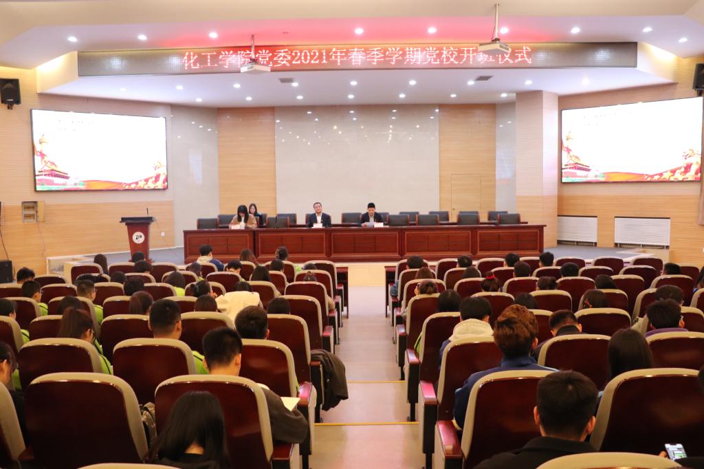 公司党委2021年春季学期党校于3月18日晚在化工楼报告厅开班。公司各支部党校学员共450余人参加开班仪式。会议由公司党委委员、党委专职组织员、团委书记任敏主持。公司党委书记王凯出席会议并担任主讲人,讲授《学习宣传贯彻2021全国两会精神》的专题党课。