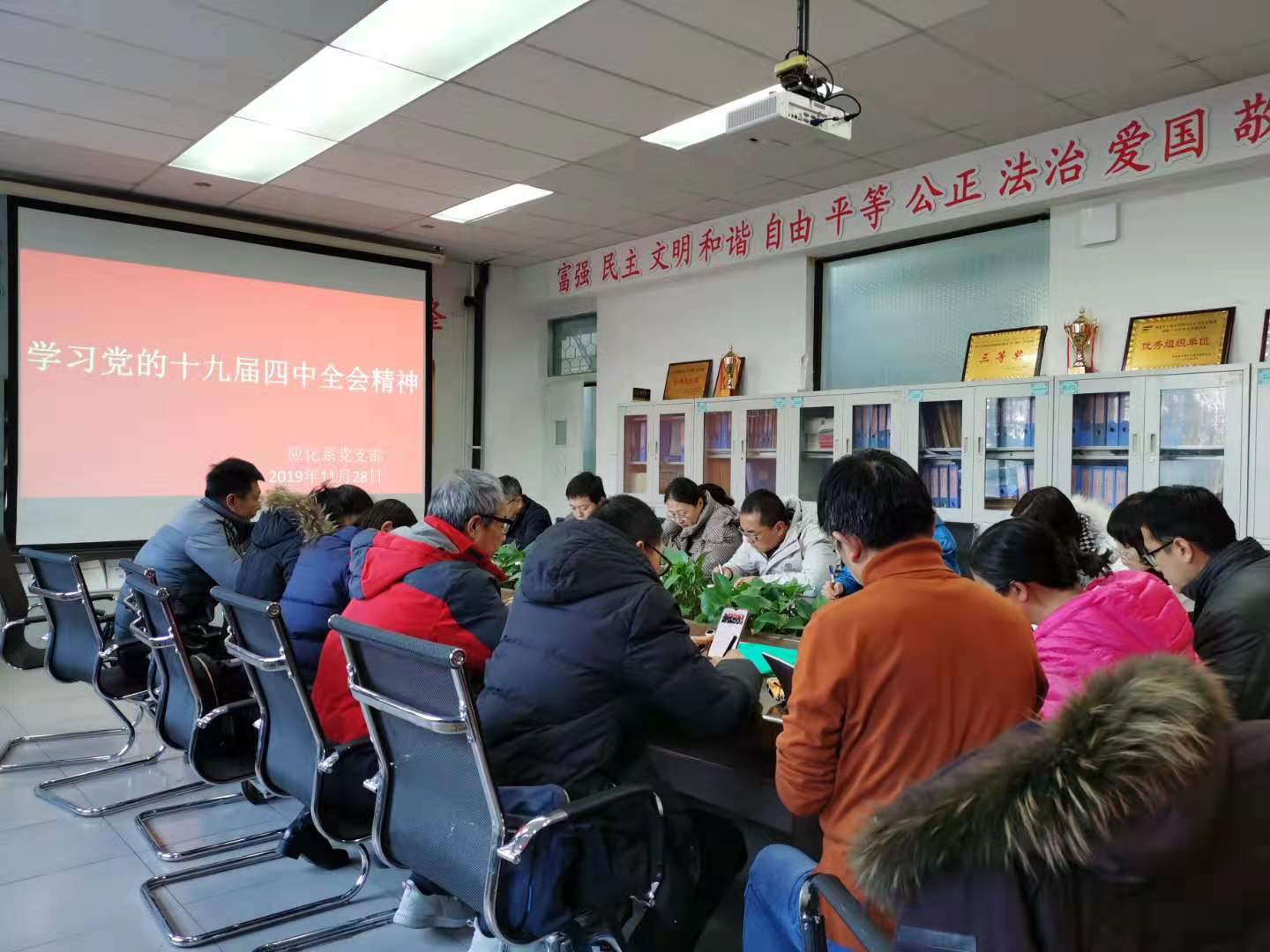 11月28日下午,英国威廉希尔公司应化党支部召开十九届四中全会精神专题学习会,党支部书记阿山领学,全体支部党员参加。