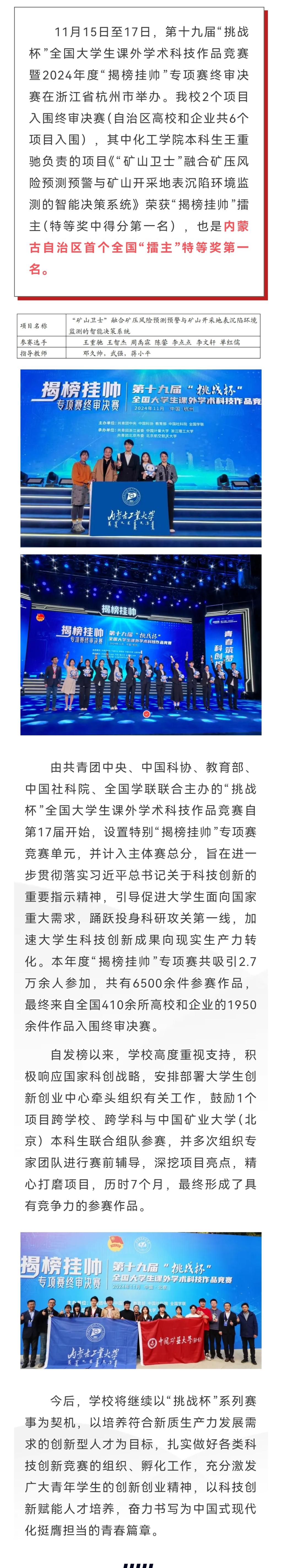新突破|公司员工在第十九届“挑战杯”全国老员工课外学术科技作品竞赛“揭榜挂帅”专项赛中获得“揭榜挂帅”擂主
